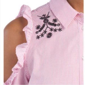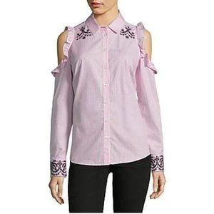 Nanette Lepore Ruffle Cold Shoulder button up shirt szM