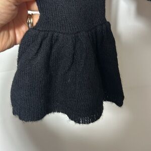Open front cardigan. Ruffle shawl collar. Long bell sleeves. Ruffle hem. Knit construction.