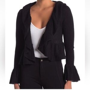 Nanette Lepore Ruffle Open Front Cardigan Sweater Merino Wool Womens Large