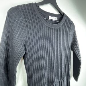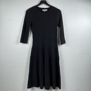 Nanette Lepore SMALL Fit & Flare Knit Dress Metallic Stripe Pleated 3/4 Sleeve