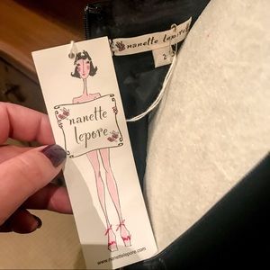 This Nanette Lepore Black Short Ball Skirt has a drop waist and a lovely stiffness and body to the fabric.