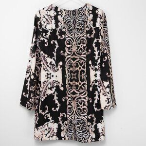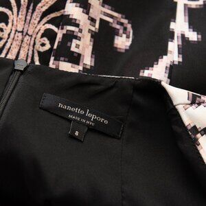 Nanette Lepore Sheath Dress Scrollwork Pixel Mini Long Sleeve Pink Black Size 8