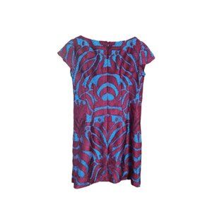 Nanette Lepore Sheath Dress Style 042-4977 Blue/Burgundy Silk Size 12 # 1075