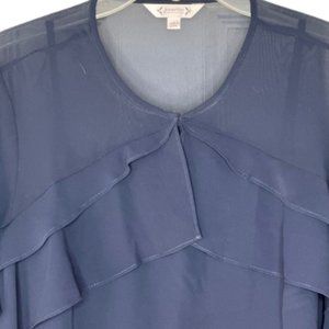 Nanette Lepore Sheer Navy Blue L/S Ruffled Blouse Top w/Cami - L