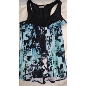 Nanette Lepore Shirt Womens XS Black Blue Floral Mesh Racerback Zip Tank Top