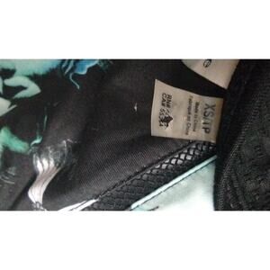 Color/Pattern: Black with blue floral/abstract print and black mesh panels