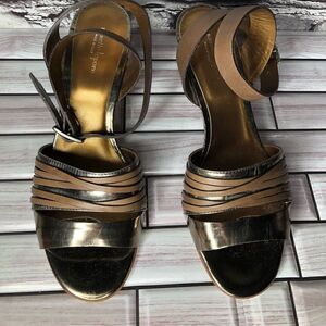 Nanette Lepore Silver Patent Brown Leather Ankle Straps Heels Women Sz 38EU/7.5M