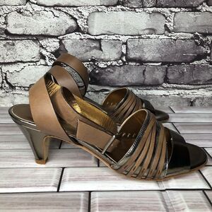 Selling Nanette Lepore Silver Patent Brown Leather Ankle Straps Heels Women Sz 38EU/7.5M US