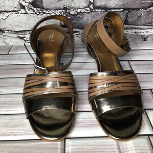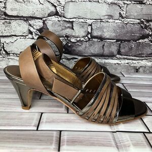 Nanette Lepore Silver Patent Brown Leather Ankle Straps Heels Women Sz 38EU/7.5M