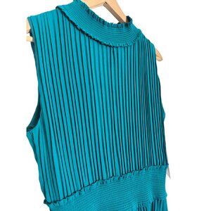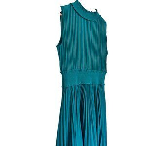 Nanette Lepore Size 10 Smocked High Neck Pleated Dress Deep Lake NWT $148