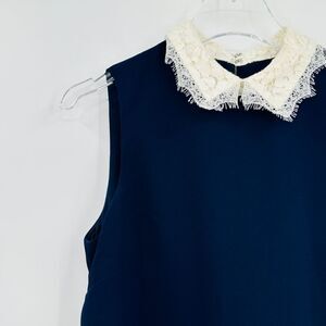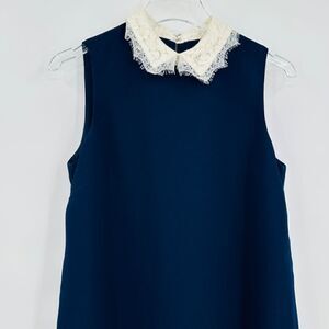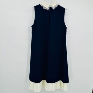 Nanette Lepore Size 6 Navy Blue Sleeveless White Lace Trim Mini Shift Dress