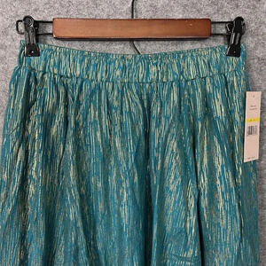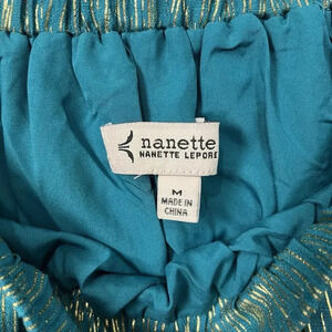 Nanette Lepore Skirt Womens M Teal Gold Pull On Elastic Waist Handkerchief Hem