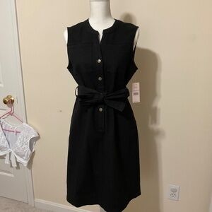 Nanette Nanette Lepore Sleeveless Denim Button Down Mini Dress Black Size 10. Fabric provides stretch, 2 chest pockets, 2 front pockets, waist tie closure, denim texture. Sleeveless, split neck, mini dress 37” long. Button front closure. 70%Cotton/25%polyester/4%spandex. Smoke free home. Fast shipping!