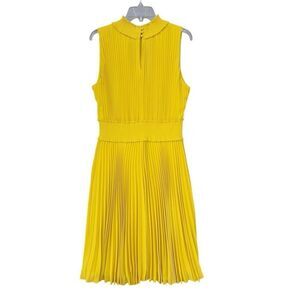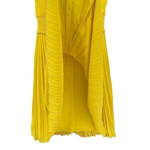 Nanette Lepore Smocked Neck Flattery MIDI Dress Pleated Mock Yellow Size 14