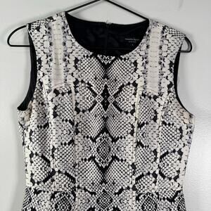 Nanette Lepore Snakeskin Print Trapeze Dress White & Black Sleeveless Size 4