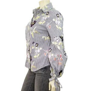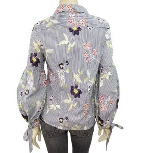 Nanette Lepore Striped Embroided Button-up Blouse Top M Balloon Sleeves