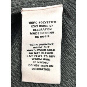 0300B- Nanette Lepore Sweater Dress, S, Black & Grey Color Block, midi, Stretchy, ribbed, long sleeve, button-down, V-neck. Made in China. Made with pre-shrunk yarn. One sweater, two styling options, extra button, style it your way. 100% polyester, Turn garment inside out. Hand wash cold. Do not bleach. Lay flat to dry. Do not iron on decoration. Warm iron if needed.