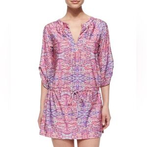 Nanette Lepore Swim Pink Solana Printed Jersey Tunic V-Neck Coverup Size S