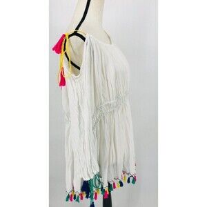 Nanette Lepore Swim Womens Boho Cover up Dress White Size Xs Embroidered Tassel