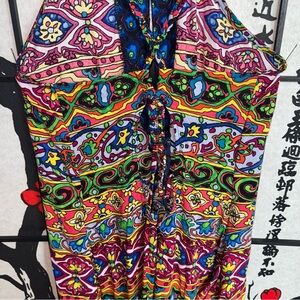 Nanette Lepore Sz Large Carnival Multicolor Summer Pocket Swim Cover Up Dress