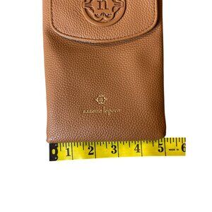 Designed for functionality and style, this tan Nanette Lepore crossbody phone bag features an adjustable strap, secure snap closure, and organized interior compartments.