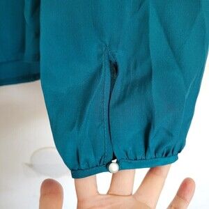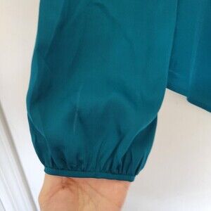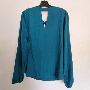 Nanette Lepore Teal Blue Long Sleeve Tie Front Keyhole Back Blouse Top Size XL