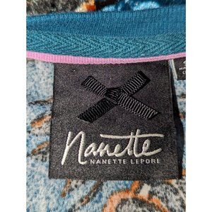 Nanette Lepore Teal Floral Print Velvet Pullover Sweater Womens Size S