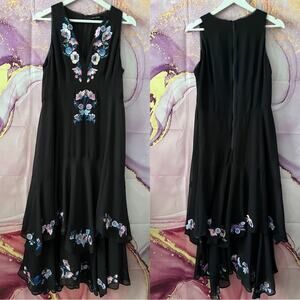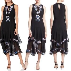 Nanette Lepore Tiered Sleeveless Floral Midi Dress Black 8