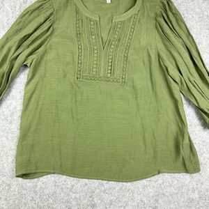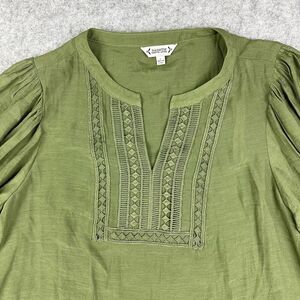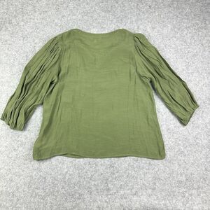 Nanette Lepore Top Womens Large Green Peasant Flowy Pullover Blouse Notch Neck. Condition is "Pre-owned"
