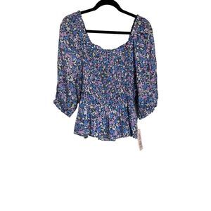 Nanette Lepore Top Womens Size Medium Retro Blue Floral Print Smocked Blouse NWT