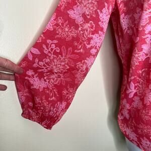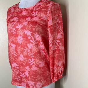 Nanette Lepore Top XS Women Pink Floral Pleated Keyhole 3/4 Sleeve Feminine Chic