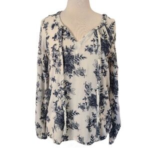 Beautiful Nanette Lepore Tunic Embroidered Top Featuring Long Sleeves, V Neckline with Tie and Button Sleeves.