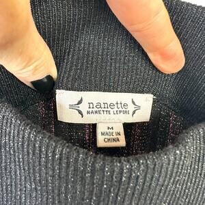 Nanette Lepore Very Black Le Rouge Silver Sparkle Pleated Midi Knit Swing Skirt