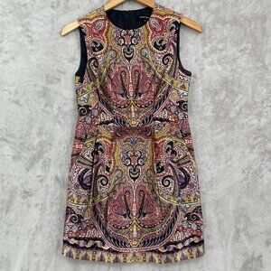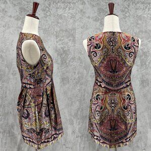 Nanette Lepore Vintage Silk Paisley Print Pleated Sheath Dress US Made