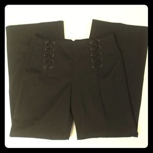 Rare beautiful Nanette Lepore's black wide leg pant / slacks. Double corset lace up with black ribbon in the front and zipper closure in back. Excellent used condition have ONLY been dry cleaned.