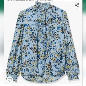 Nanette Lepore Windswept Blue Floral Long Sleeve Blouse Smocked Details Large L