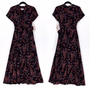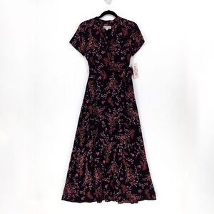 Nanette Lepore Women 4 Dragonfruit Dress Black Print Maxi Floral Waist Tie NEW