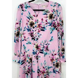 Nanette Lepore Women Shift Dress 8 Sugar Plum Floral Long Sleeve Zip Pleat New