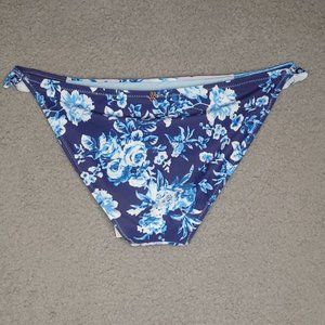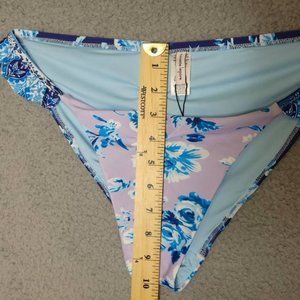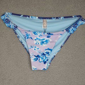 Nanette Lepore Womens Bikini Swim Bottom Blue Purple Floral Ruffle Straps 10 New