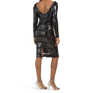 Nanette Lepore Womens Black Wavy Sequin Striped Long Sleeve Sheath Dress Sz 10 NWT ~ Last One