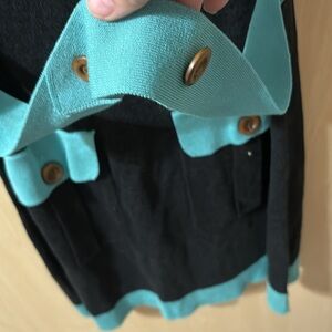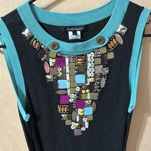 Nanette Lepore Women’s Black & Turquoise Beaded Knit Bodycon Dress Artsy Boho S