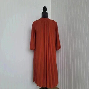 Nanette Lepore Womens Brown Pleated Belted V-Neck Long Sleeve A-Line Dress Sz 2