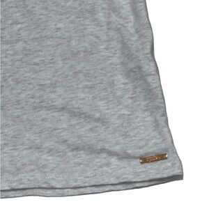 Excellent preowned condition Nanette Lepore Women's Cutout Shoulder Top Size L. Heather oatmeal color. Factory rolled sleeves. Rose gold hardware on bottom left he. Softy, stretchy material.