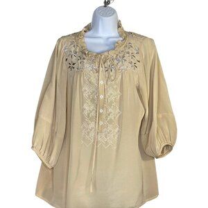 Nanette Lepore Womens Faustina Blouse Long Sleeve Floral Lace Button Up Size 12