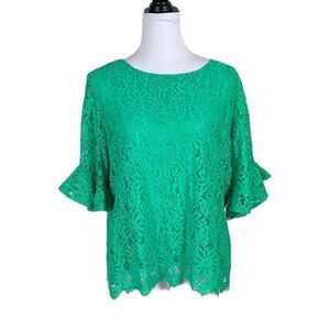 Nanette Lepore Women’s Green Lace Scallop Hem Bell Sleeves Top, Size L