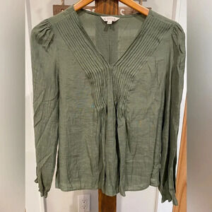 Nanette Lepore Women’s Green Smocked Pleated Long Sleeve Boho Blouse Small EUC