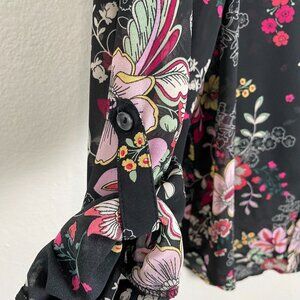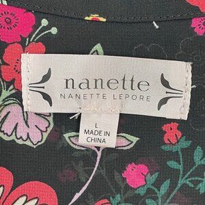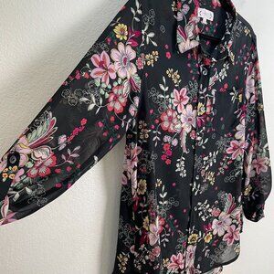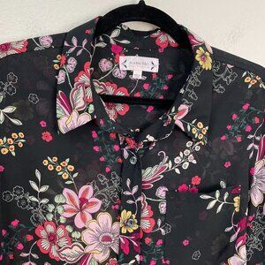 Nanette Lepore Womens Large Floral Sheer Button Up Blouse Long Sleeve Shirt Top