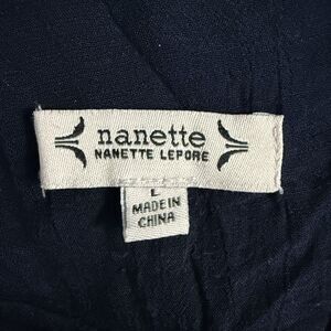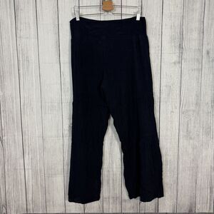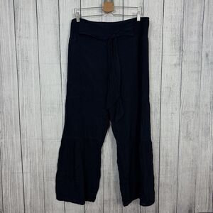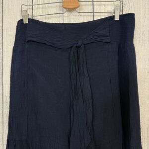 Nanette Lepore Women's Large Navy Blue Crinkle Pull On Wide Leg Stretch Pants