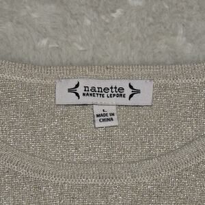 Nanette Lepore Women’s Large Shimmer Knit Sweater Metallic Pleated Sleeve Jewels