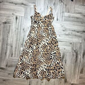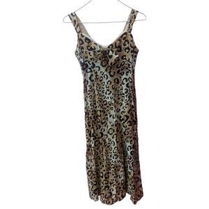 Nanette Lepore Women's Leopard Print Sleeveless Bow Smocked Midi Dress Size 2